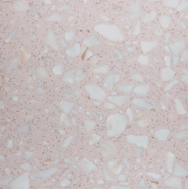 Le Terrazzo est un matériau de revêtement composé de fragments de pierre (marbre, quartz, granit, verre…) incorporés dans un liant — traditionnellement du ciment, aujourd’hui parfois de la résine.
