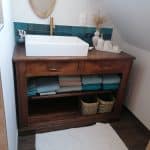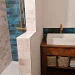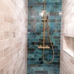 Réalisation d’une SDD en briquettes turquoises et beiges.