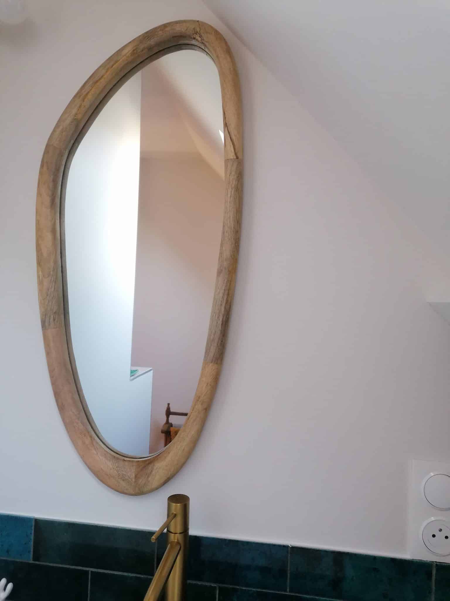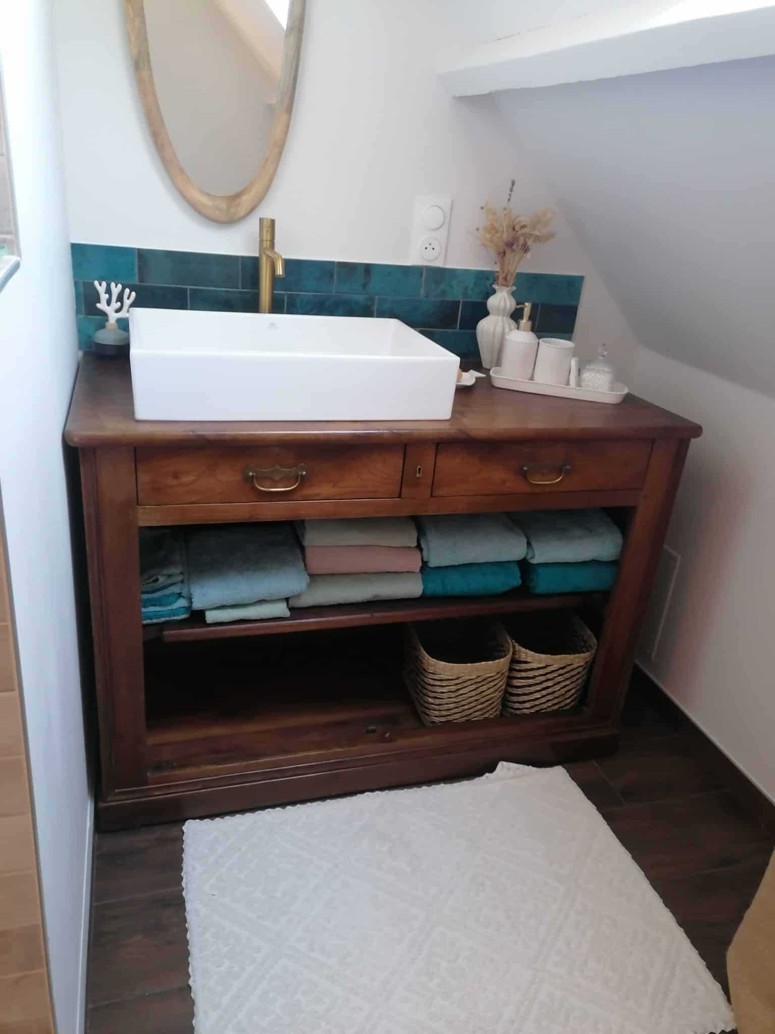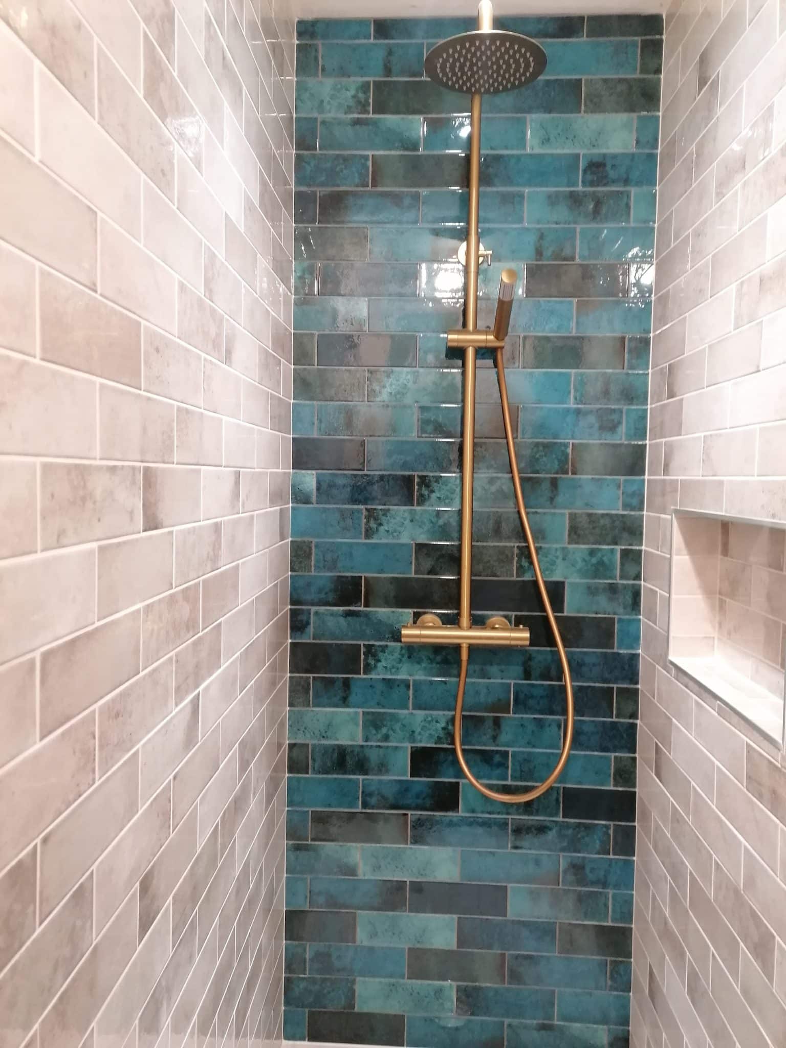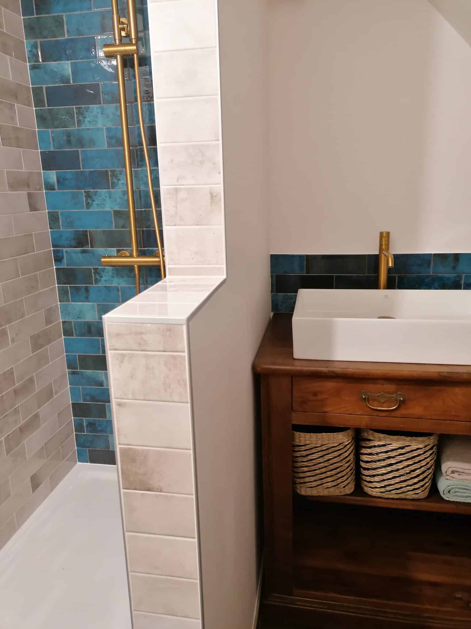 Réalisation d’une SDD en briquettes turquoises et beiges.