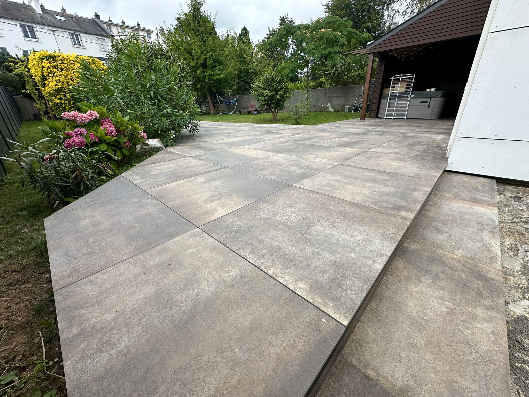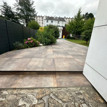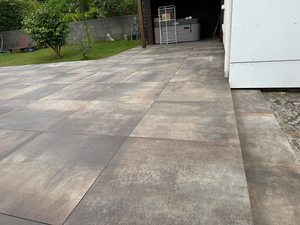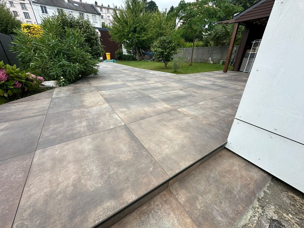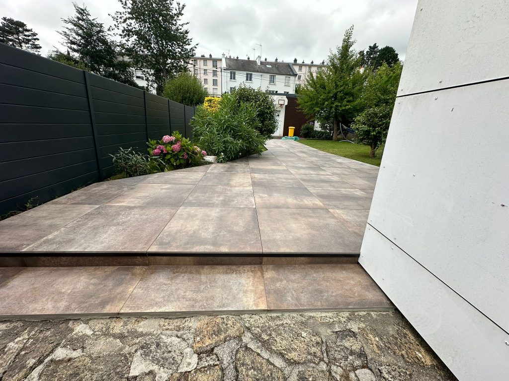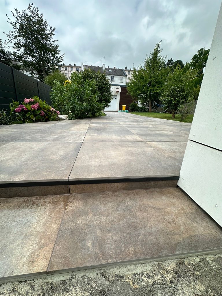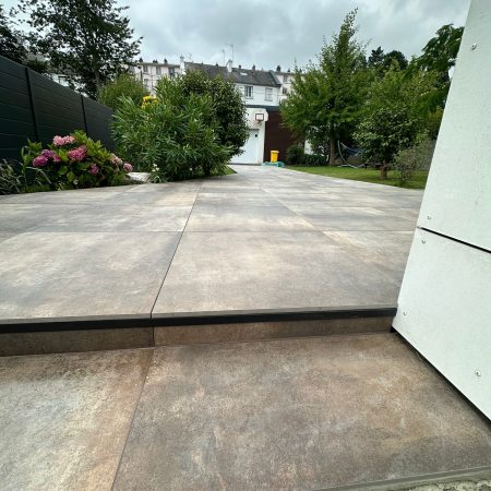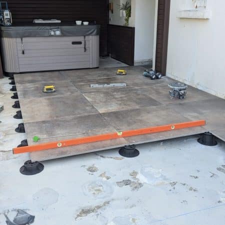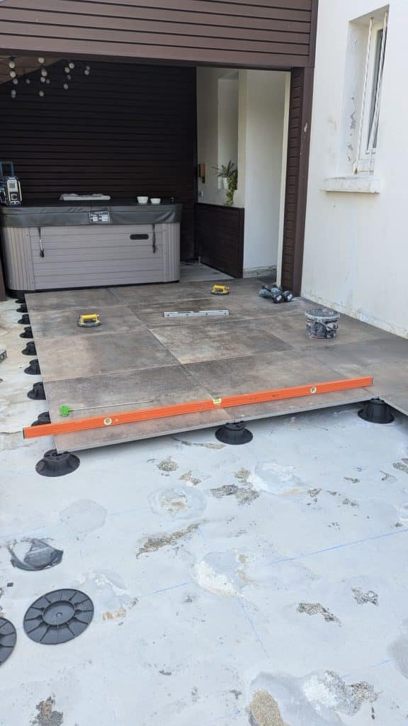 Réalisation d’une terrasse sur plots à partir de dalles 90×90 Grès cérame coloré